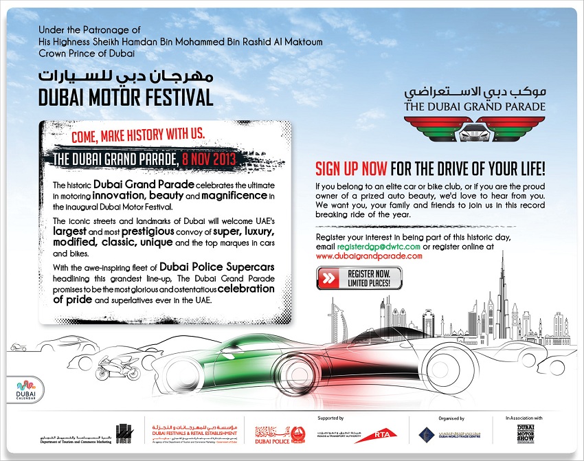 The last time Dubai had a motor parade, little diva and I were lucky enough to be the first car to be flagged off in the line up of the most rocking cars in Dubai (I was test driving the latest model of Ford but as an honorary member of the Corvette UAE Club, the boys let me stay in the beginning so all the Corvettes could follow together in the line up)