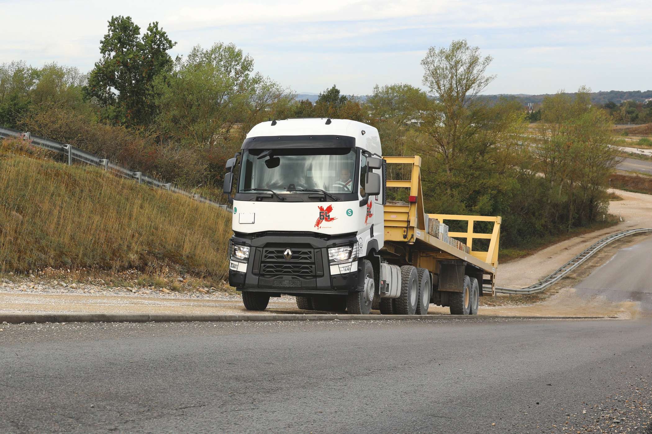 It is fitted with a new ultra-robust reinforced 6×4 300 mm chassis with a three-axle profile, allowing a load of 8 tons on the front axle and 26 tons on the rear. For optimum driving comfort and perfect control of the vehicle in any situation, the Renault Trucks T X-64 is fitted with an Optidriver robotised gearbox with off-road mode and manual acceleration.