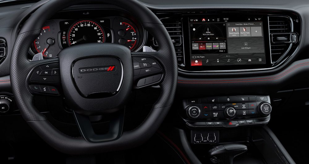 The new driver-centric cockpit was inspired by the beloved interior of the Dodge Challenger. The available Uconnect screen has been upgraded with a 10.1-inch touchscreen that is 7-degrees oriented towards the driver. It remains one of the industry’s best entertainment and information interfaces because it is simple and intuitive. And for added ease and convenience, the Dodge Durango also offers a wireless charging pad. The redesigned dashboard with a thinner center stack area and better stowage.