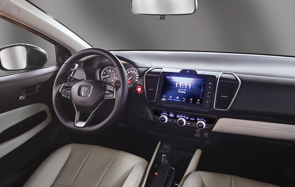 Inside the All-New City, we are greeted by an ergonomically designed, and thoughtfully laid-out instrument panel. This sports the advanced touchscreen which connects with Android and iOS++, opening new ways to stay social and digital on the drive. With the Next Gen Honda Connect, an exciting information technology platform with 32 ingenious features provides a sense of safety, security and convenience.