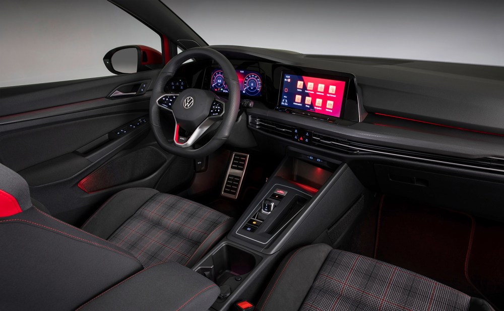 The new Golf GTI is powered by a 2.0-litre turbocharged four-cylinder engine and maximum torque of 370 Nm. The engine is coupled with an automatic 7-speed dual clutch gearbox (DSG), and a brand new GTI gear knob. It can take you from 0 to 100 km/h in just 6.2 seconds and can reach a top speed of 250 km/h.