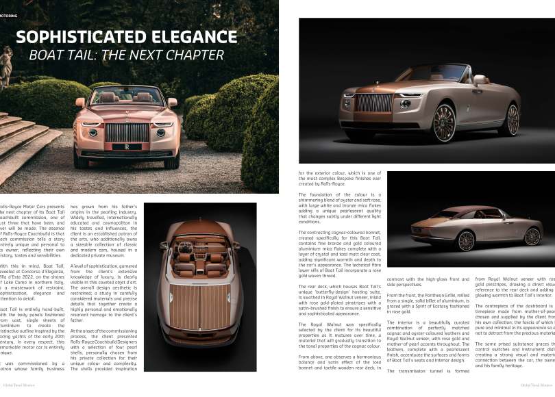 Rolls-Royce Motor Cars presents the next chapter of its Boat Tail coachbuilt commission, one of just three that have been, and ever will be made. The essence of Rolls-Royce Coachbuild is that each commission tells a story entirely unique and personal to its owner, reflecting their own history, tastes and sensibilities.
