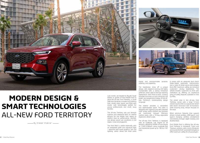 Ford Middle East is offering the all-new Ford Territory in Ambiente, Trend and Titanium variants, with a host of features and a suite of driver-assist technologies to offer maximum safety for all passengers.
