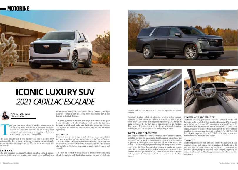 This year has been all about product enhancement in the motoring sector and we had a few days testing the all-new 2021 Cadillac Escalade, which is completely redesigned with pioneering new technologies that add new dimension to the iconic luxury SUV. The 2021 Escalade has a bold presence and has been completely redesigned to deliver improved driving dynamics and significantly greater passenger and cargo capacities. We get you some insights into the vehicle.