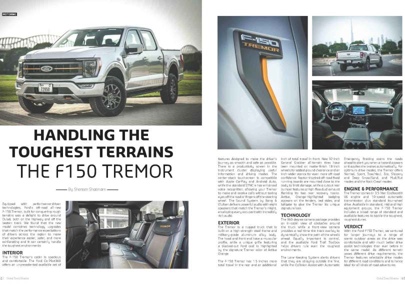 Equipped with performance-driven technologies, Ford’s off-road all-new F-150 Tremor, built for conquering rough terrains was a delight to drive around Dubai, both on the highway and off the beaten track. We found that the new model combines technology upgrades that match the performance expectations of drivers across the region to make their experience easier, safer, and more exhilarating and it can certainly handle the toughest environments.