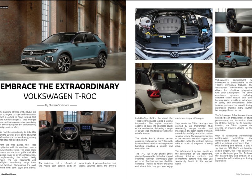 The bustling streets of the Dubai are not strangers to style and innovation when it comes to head turning cars cars but Volkswagen’s T-Roc emerges as a captivating contender, promising an exhilarating blend of performance, design, and comfort. We had the opportunity to take this striking SUV for a test drive, and what followed was an extraordinary journey that left a feel good memory.