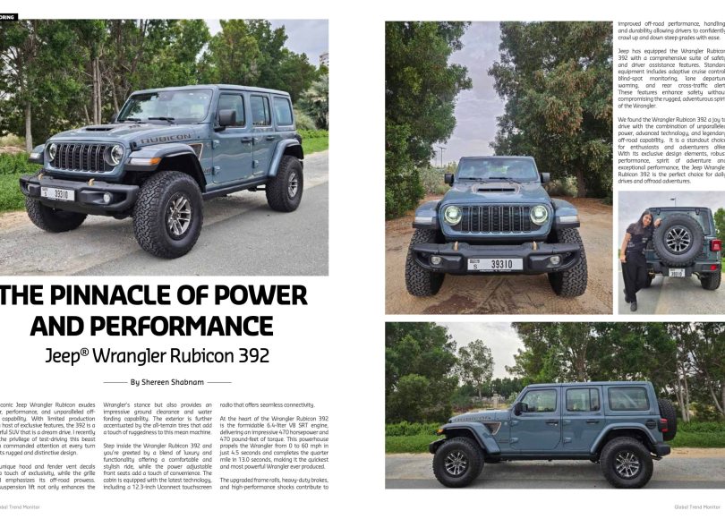 The iconic Jeep Wrangler Rubicon exudes power, performance, and unparalleled off-road capability. With limited production and a host of exclusive features, the 392 is a powerful SUV that is a dream drive. I recently had the privilege of test-driving this beast which commanded attention at every turn with its rugged and distinctive design.