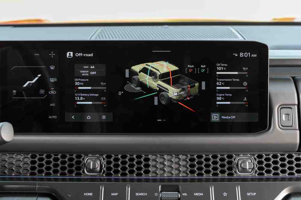 The Tasman’s presence is immediately striking. Its bold front grille and rugged bumper give it a commanding look that feels ready for work or weekend adventure. High-clearance bodywork and muscular fender flares underline its off-road capabilities, while LED lighting adds a modern touch to its tough exterior. Measuring a full-size pickup length with robust proportions, the Tasman balances rugged utility with sharper design details, strong body lines and a purposeful stance that looks confident on urban roads as well as rougher desert tracks.