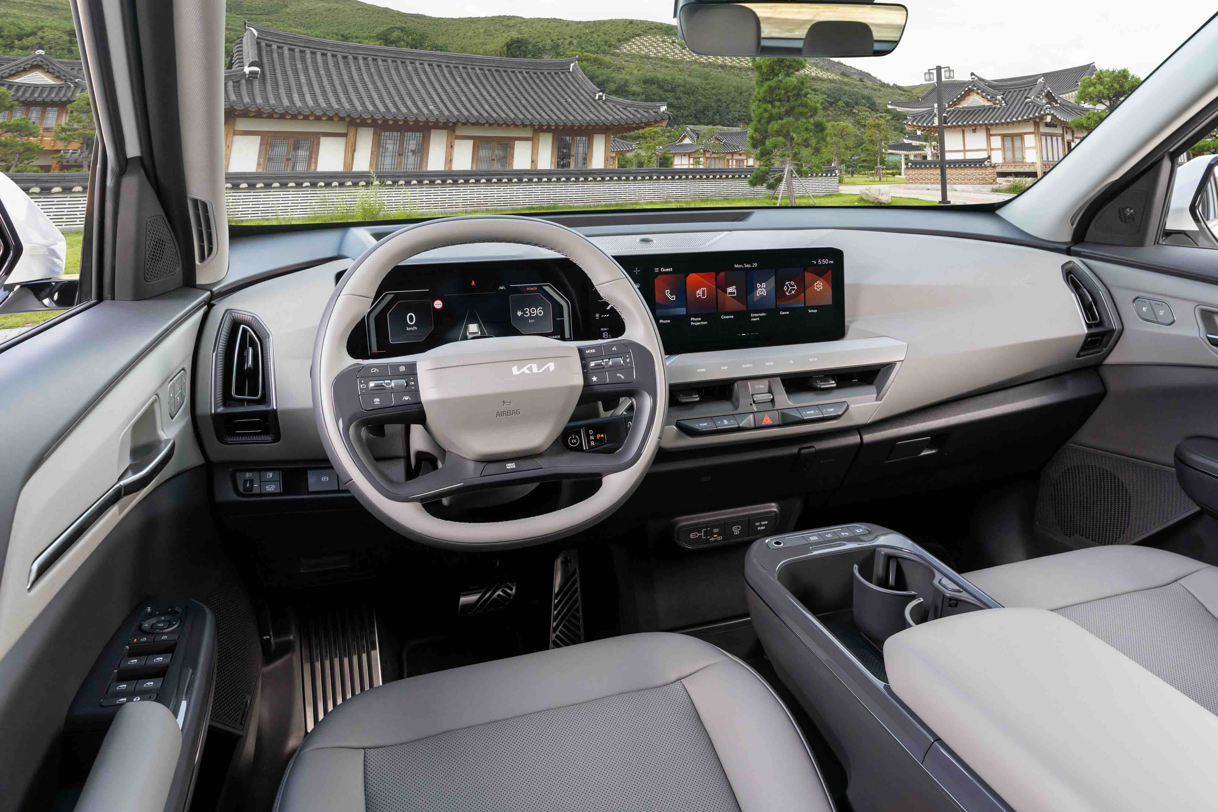 The EV5 carries Kia’s evolving “Opposites United” design philosophy with confidence. Its squared-off stance, sharp LED light signatures, and clean surfaces give it a modern, almost concept-car aesthetic. The front fascia features a wide light bar and vertically stacked LED daytime running lights, creating a distinctive presence during our drive on Sheikh Zayed Road. The boxy proportions are not just for show. They maximise interior space while giving the SUV a planted, stable look. Flush door handles enhance aerodynamics, while sculpted body lines reduce visual bulk. At the rear, the sleek horizontal LED lighting adds a tech-forward identity that looks especially striking at night.