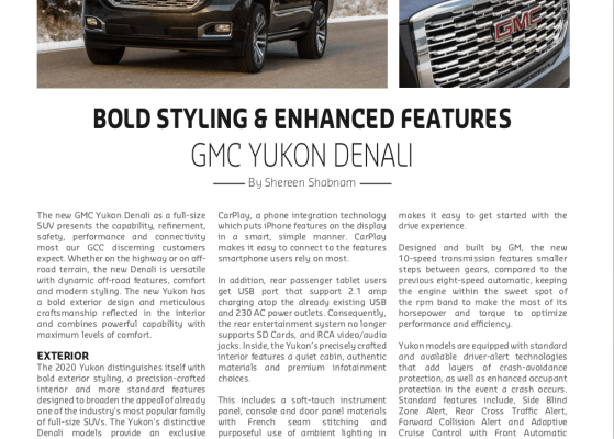 By Shereen Shabnam The new GMC Yukon Denali as a full-size SUV presents the capability, refinement, safety, performance and connectivity