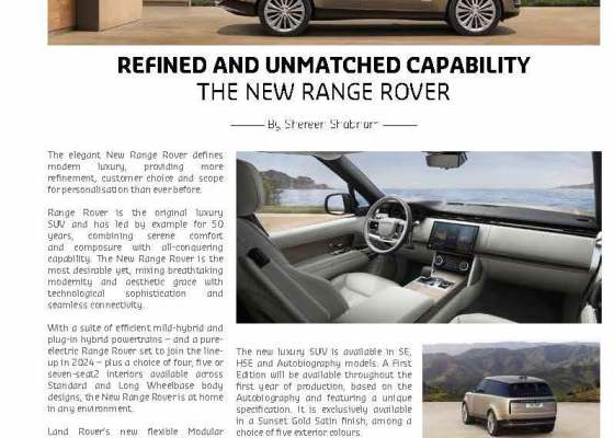 By Shereen Shabnam The elegant New Range Rover defines modern luxury, providing more refinement, customer choice and scope for personalisation